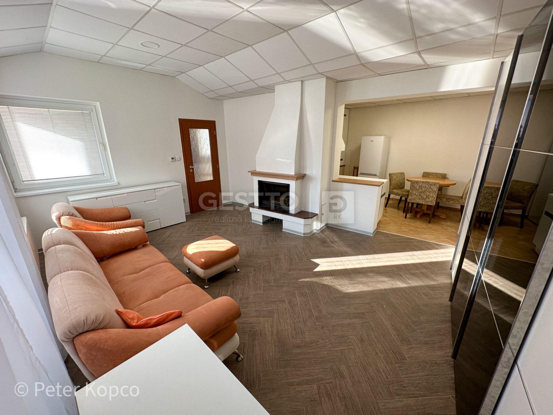 -denná/obývacia miestnosť prechodná do kuchynskej časti s jedálenským kútom